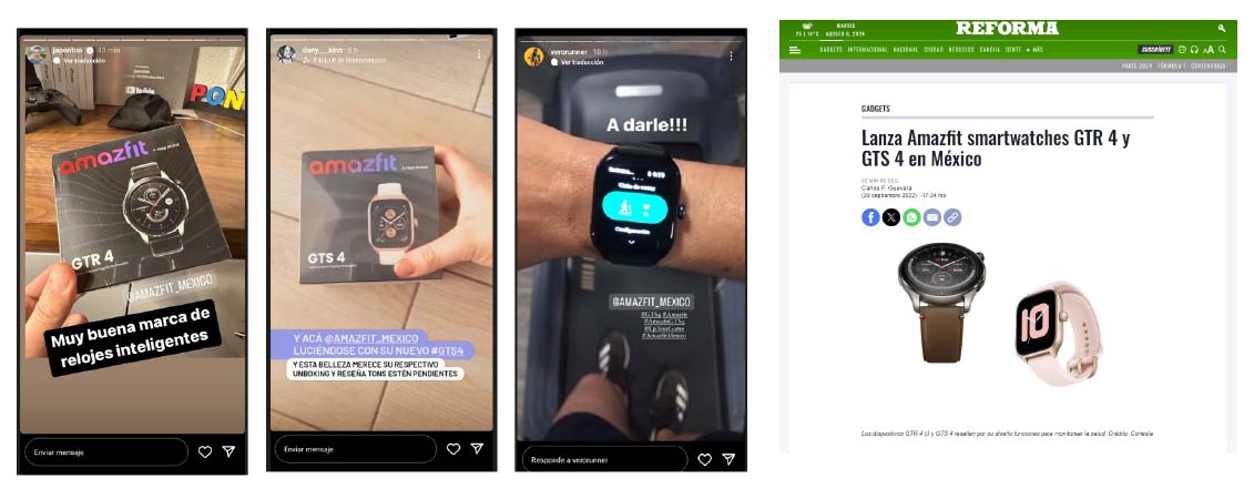 Posicionamiento Amazfit en México – estrategia de 6 meses: • Comunicados de prensa, reseñas, evento virtual, contenidos y entrevistas generando más de 200 publicaciones en medios de comunicación con un alcance superior a 158 M. • 36 influencers por intercambio obteniendo 154 publicaciones y un reach de 9.5 M. • Evento para influencers al que asistieron 14 y de donde se generaron 59 publicaciones con un alcance de 305 K.